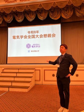 令和8年電気学会全国大会で研究発表しました(D1 XUE, M1 林/ 松花/ YANG, B4 小松) Presantion at the 2026 Japan Institute of Electrical Engineers of Japan National Convention (D1 XUE, M1 Hayashi/Matsuhana/Yang, B4 Komatsu).